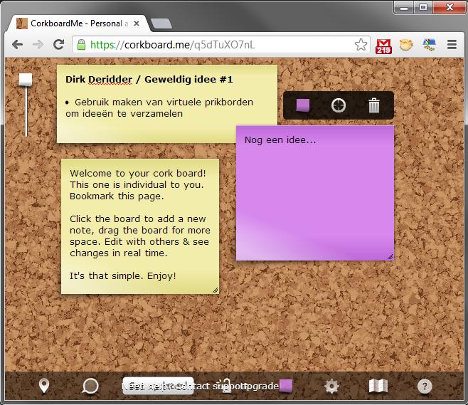 Deze toepassing is een van de betere op de markt voor publieke prikborden. Prikborden waarbij je informatie toegankelijk wil maken voor iedereen te vergelijken met de ad valvas in scholen. Erg handig om bijvoorbeeld je persoonlijke nota’s van presentaties tijdens een conferentie te verzamelen en te delen met de buitenwereld, of om informatie te delen over optredens van een band, of om een verlanglijstje samen te stellen (voor dit laatste is Pinterest ook een goede kandidaat). Zeker een aanrader om uit te proberen wanneer je geen problemen hebt met het vrijgeven van de informatie op je prikbord.