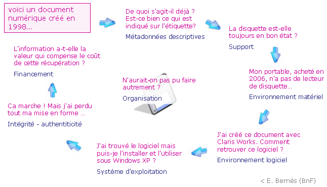 La “Préservation de l’information numérique” est une problématique complexe. Comme je l’avais souligné durant ma session d’information, les difficultés sont nombreuses comme le montre l’image ci-dessous :