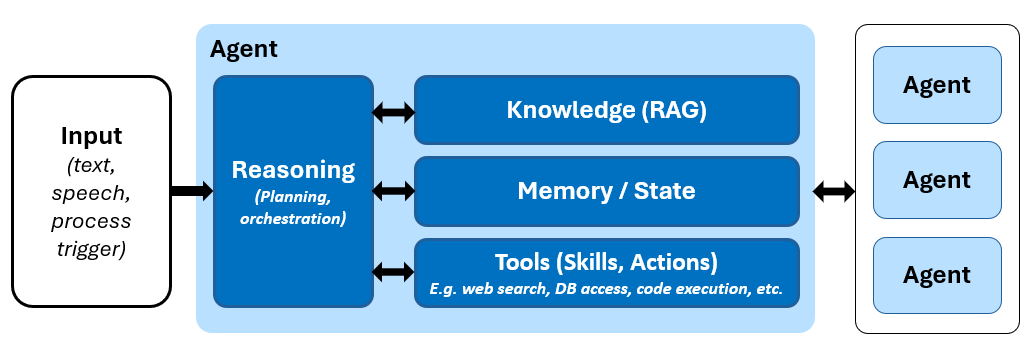 AI agents bestaan doorgaans uit meerdere bouwstenen die samen hun intelligent gedrag mogelijk maken: