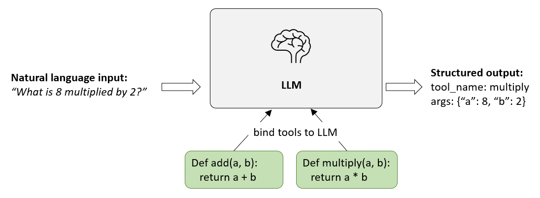 Tools: tools, zoals zoekmachines, databanken of API’s, kunnen gekoppeld worden aan grote taalmodellen (LLM’s). Op basis van een beschrijving van de tools kan het model dan bepalen welke tool er moet gebruikt worden om een bepaalde taak uit te voeren, tezamen met de input-parameters.