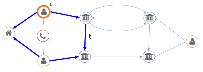 Dans le secteur de la lutte contre la fraude, on pourrait être intéressé par les personnes ayant effectué des virements vers des personnes ayant été convaincues de fraude par le passé, voire vers personnes vivant à la même adresse que des personnes négativement connues :