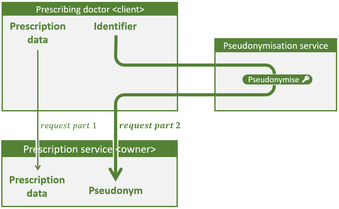 Le troisième rôle est celui du service de pseudonymisation, qui est chargé de convertir le numéro de registre national du patient en pseudonyme correspondant (opération pseudonymize) ou, inversement, le pseudonyme en numéro de registre national (opération identify). Le numéro de registre national du médecin ou son numéro INAMI peuvent également être pseudonymisés de la même manière.