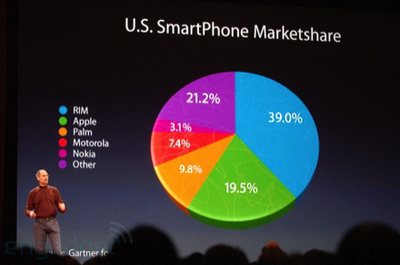 Un outil comme Excel vous permet – pour ne pas dire vous y incite – de rajouter des effets de perspective à vos graphiques. Si le résultat peut être visuellement élégant, il sera bon de s’en servir avec parcimonie, car il est particulièrement trompeur. ApplePrenons l’exemple d’un graphique en tarte : non seulement les segments qui apparaîtront du côté du lecteur seront augmentés d’une “tranche” que n’auront pas les segments opposés, mais par ailleurs la perspective diminuera la surface les segments les plus éloignés. Dans l’exemple ci-contre, on peut voir Steve Jobs, en pleine “Keynote”, présentant la répartition du marché des principaux vendeurs de smartphones. Apple (19.5 %), en vert, occupe une surface à l’écran 1.8 fois supérieure à celle occupée par le segment “Autres” (21.2 %), en violet !Apple2 On a donc, pour la comparaison entre ces deux éléments, un lie factor proche de 10 ! Pour mieux visualiser la “tromperie”, voici ci-contre une version du graphique dans lequel on superpose le segment violet des 21.2 % à celui, vert, des 19.5 %. En théorie, le vert devrait donc avoir complètement disparu. Jugez-en par vous-même…