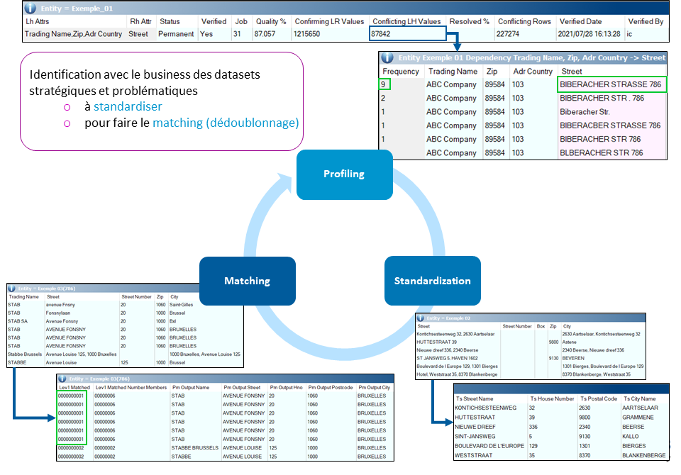 Figure 2 : Profiling, standardisation et matching : les trois familles de fonctionnalités majeures et itératives.