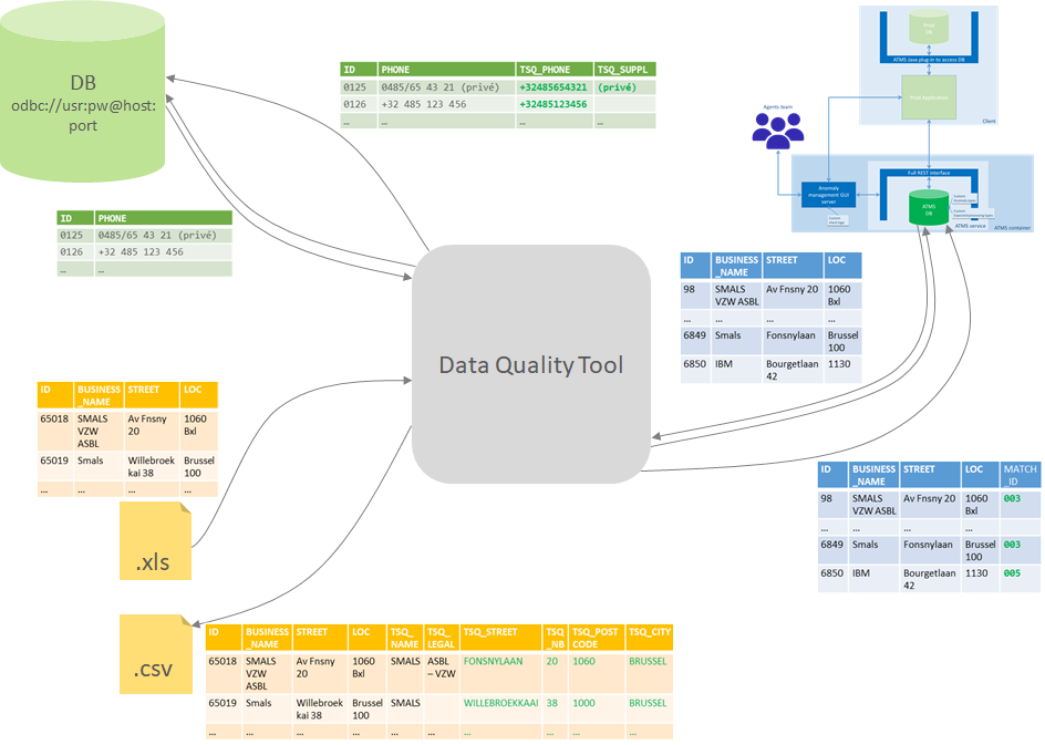 Généralement, les data quality tools couvrent une à trois des grandes familles de fonctionnalités présentées ici, l’outil acquis par Smals incluant les trois dans le cadre d’une suite comportant un grand nombre d’algorithmes de traitement de données génériques ou “ad hoc”.