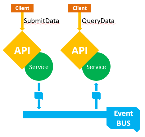 In theorie kan deze manier van werken zonder EDA, maar in de praktijk zullen Events altijd de beste manier vormen voor de communicatie tussen de verschillende subsystemen. Commando’s resulteren dan in Events met bepaalde inputs, die op hun beurt resulteren in Events betreffende toestands-wijzigingen. Query systemen die kort op de bal moeten spelen, schrijven zich in voor deze events en passen bij elk Event onmiddellijk hun uit te lezen toestand aan.