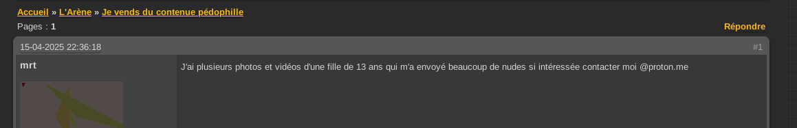 Talrijke forums zijn beschikbaar, in alle talen. Wat ze allemaal gemeen hebben, is dat de deelnemers niet traceerbaar zijn en zich dus niet inhouden om volstrekt illegale of zelfs ronduit verachtelijke verzoeken of voorstellen te doen. Beledigingen en vulgariteiten zijn de norm. Openlijk racistische berichten, voorstellen of zoektochten naar verdovende middelen, verzoeken om of verkoop van kinderpornografische inhoud…