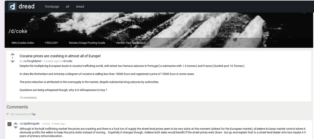 • een groot deel van de sites (markets, forums, zoekmachines) lijkt rechtstreeks uit het begin van de jaren 2000 te komen… een zeer “vintage” ontwerp en ergonomie, weinig gebruiksvriendelijk, waar je moeilijk naar kan kijken. Misschien onder andere omdat de meeste zijn ontworpen om zonder Javascript te kunnen werken, wat wordt aanbevolen om de risico’s te beperken;