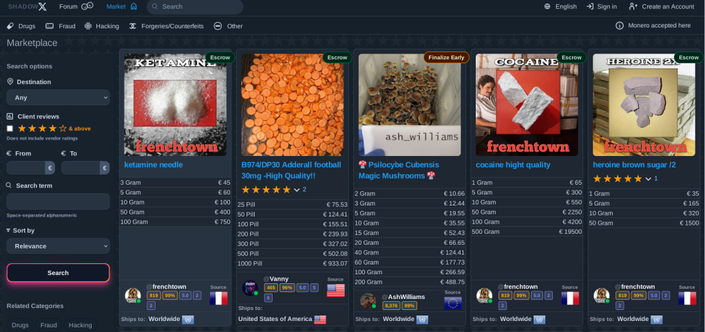 Talrijke “markets” zijn beschikbaar op het Dark Web, die een beetje werken zoals Amazon of Bol.com. De meeste eisen betalingen in Bitcoin (of vaker Monero, waardoor er geen verband kan worden gelegd tussen twee transacties) en bieden een hele reeks producten aan die niet verkrijgbaar zijn op meer traditionele opdrachten: