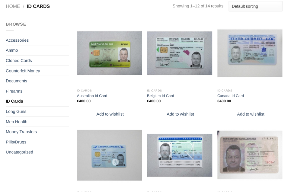 • valse documenten: paspoorten, rijbewijzen, identiteitskaarten, en dit voor meerdere landen.