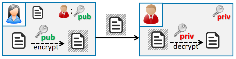 De grootste dreiging vanuit kwantumcomputers lijkt zich te situeren in de publieke sleutelcryptografie. Daarbij wordt gebruik gemaakt van een sleutelpaar: een publieke sleutel die in principe door iedereen gekend mag zijn en een private sleutel die slechts door één entiteit gekend is. Dit wordt onder meer gebruikt voor digitale handtekeningen, authenticatie, het opzetten van veilige kanalen en vaak ook voor vercijfering (zie onderstaande figuur).