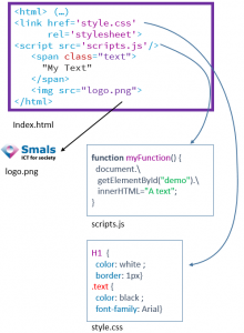 Dans le premier cas, le code source (HTML) envoyé par le serveur web contient toutes les informations que l’on veut extraire. Le site en question peut utiliser du Javascript, typiquement pour améliorer l’expérience utilisateur, mais son exécution n’est pas nécessaire pour obtenir le contenu. Le code HTML peut également appeler à l’inclusion d’images ou de feuilles de style CSS, mais à nouveau, celles-ci n’ont qu’un but esthétique, et n’ont donc pas besoin d’être chargées pour extraire le contenu désiré.