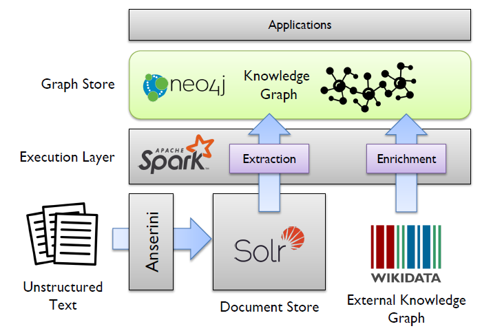 Les types de données sont multiples et incluent les textes, les données structurées mais aussi la vidéo et l’audio. Pour l’extraction d’informations nécessaires à la construction du graphe à partir de textes non structurés, on a besoin de techniques de traitement automatique du langage ou NLP (Natural Language Processing) :