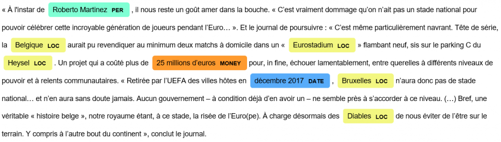 Application à un article de presse d’un modèle NER entraîné sur des textes Wikipédia.