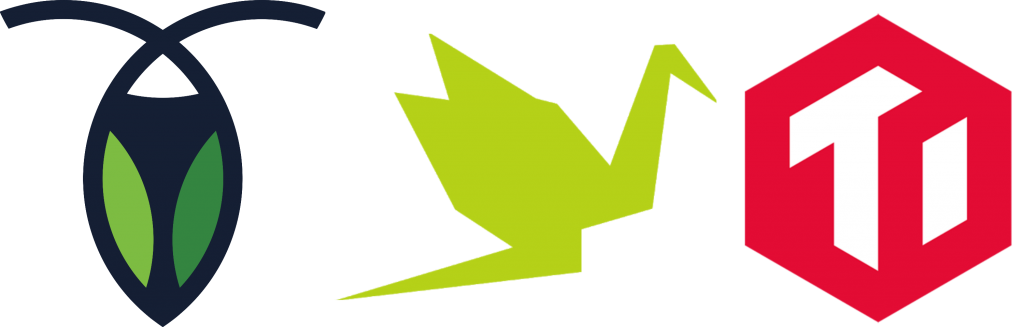 Figuur 2: De logo’s van CockroachDB, NuoDB en TiDB, de drie geteste producten