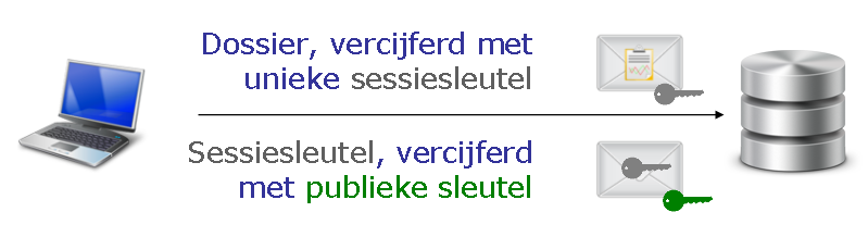 - De dokter combineert de twee delen tot een ontcijferde unieke sessiesleutel, waarme de werkelijke gegevens ontcijferd kunnen worden.