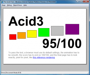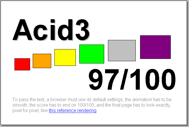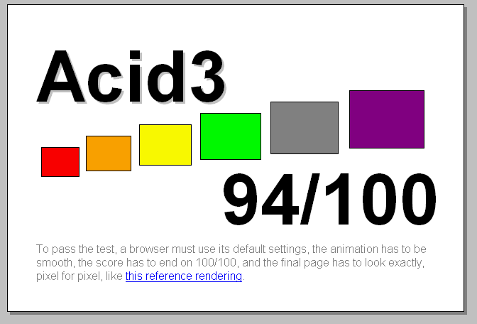 - Acid test 3 : test de diverses fonctionnalités issues de plusieurs standards du Web (100 points maximum)