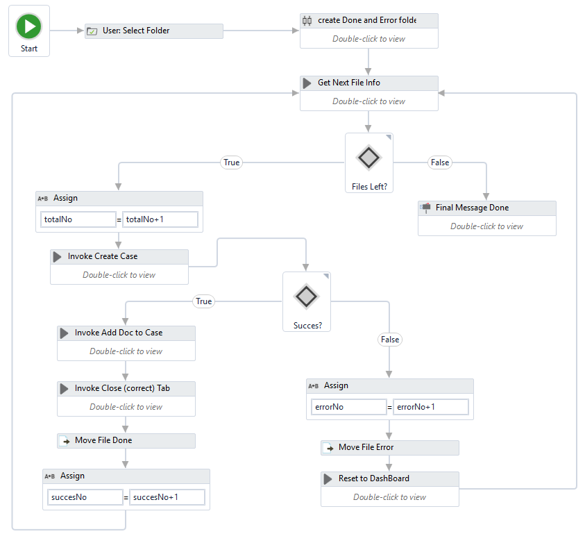 Een voorbeeld van een flowchart in een RPA tool