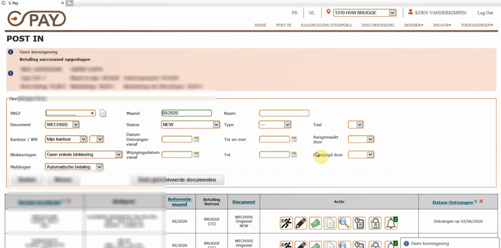 Daarnaast is dit ook behoorlijk saai en repetitief werk: de laatste nodige handeling om tot betaling over te gaan, betreft het klikken op een knop in een lijst in een webtoepassing, om daarna even te wachten tot de desbetreffende lijn in de lijst verwerkt is en over te gaan tot exact hetzelfde op de volgende lijn. “Saai en repetitief werk“: dit is natuurlijk een eerste sterke indicatie dat RPA een goede oplossing kan zijn om dit te automatiseren. Voor het gebruiksgemak zal de robot echter iets meer moeten kunnen dan enkel dit aanklikken in de lijst: eerst moet er worden ingelogd in de toepassing, daarna wordt doorheen de lijst van HVW-kantoren gegaan, en voor elk van deze kantoren moet er een zoekopdracht worden ingegeven om de uit te betalen dossiers te vinden.