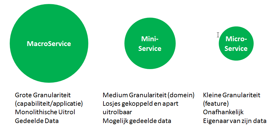 Eén van de grote hypes in de wereld van de software architectuur, is het gebruik van MicroServices. Vaak is het “micro” aspect echter een beetje overkill, en maakt men eerder “MiniServices”. Deze blog werpt een blik op welke maten en gewichten van services er zoal bestaan.
