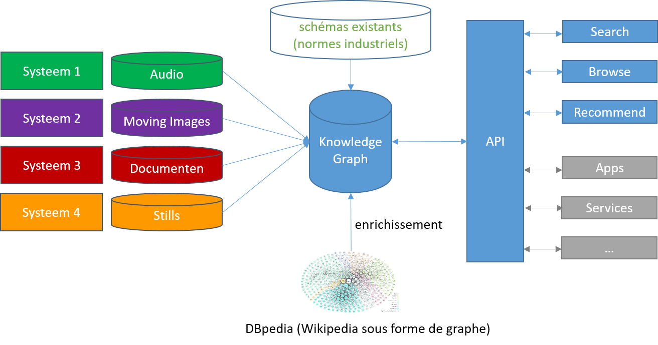 Le RTÉ, en partenariat avec une université irlandaise, avait lancé un projet de graphe de connaissances. L’auteur de cet article était impliqué dans ce projet. Le but du projet était de développer un graphe de connaissances (proof-of-concept) pour faciliter la découverte et l’analyse des données contenues dans ces archives et de promouvoir les métadonnées à des entités. Par exemple, le sujet d’une photo qui n’était auparavant qu’une simple valeur littérale comme « Bruxelles » est transformée en entité d’une ville qui porte le nom de « Bruxelles » en français. En conséquence, il peut être ajouté à cette entité d’autres relations comme le nom en néerlandais et « est la capitale de » avec une entité qui représente la Belgique. Le résultat est une conceptualisation plus détaillée, ce qui nous permet de formuler des requêtes comme : « donne-moi une liste de tous les documents de la capitale de la Belgique» sans connaître le nom de cette ville.