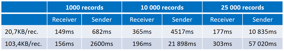 Indien een ontvanger toegang wil tot één record uit een set van 1000, waarbij het gemiddelde record 20KB groot is, zal er logischerwijs 20MB verstuurd moeten worden per query. Daarnaast zal de zender zo’n 0,7 seconden rekenwerk hebben, voornamelijk om alle data te vercijferen, terwijl de ontvanger 0,15 seconden zal moeten rekenen.